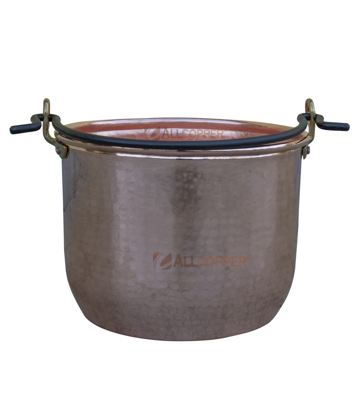 Casserole en cuivre , Feta, martelées à la main avec un arc en fer.