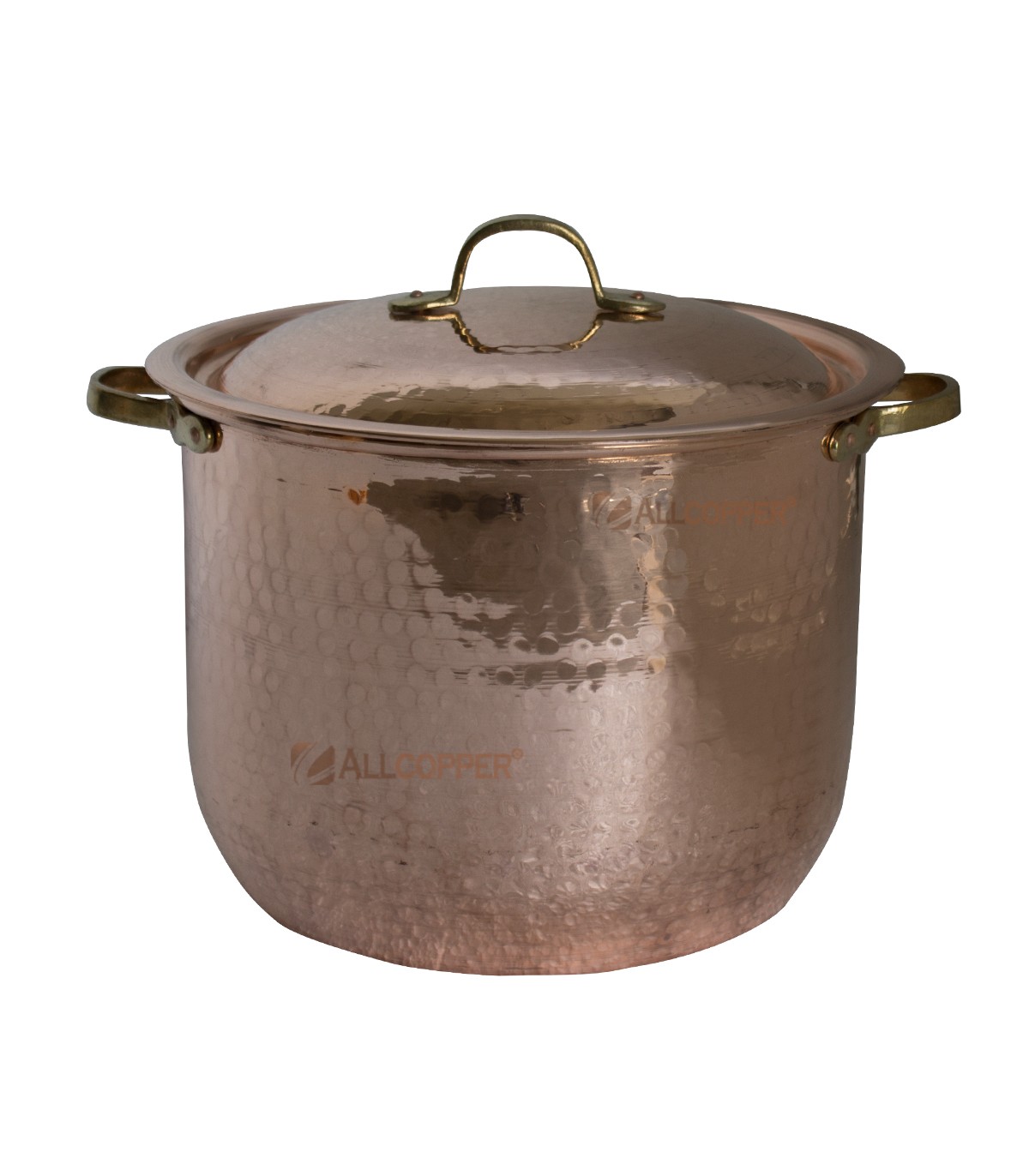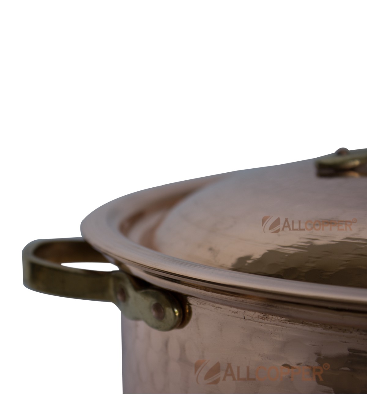 Saucepan copper with lid, hammered, wings in brass, can be used on any stove, except induction