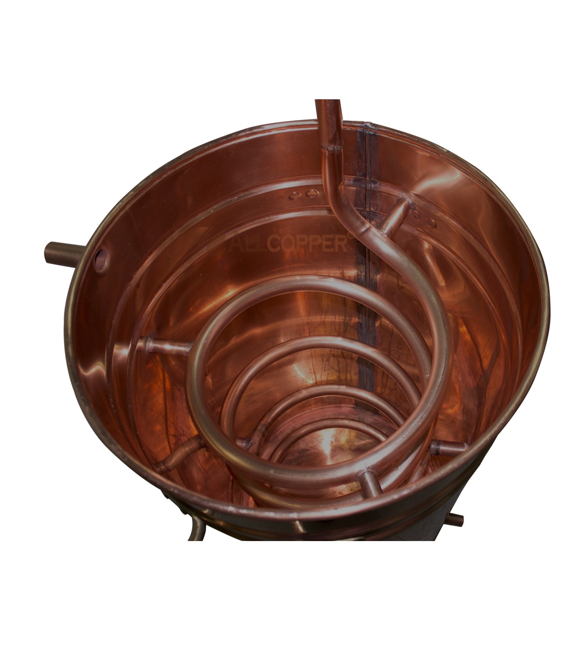 This design is equipped with the boiler, the helmet, the swan neck and the condenser with serpentine coil.