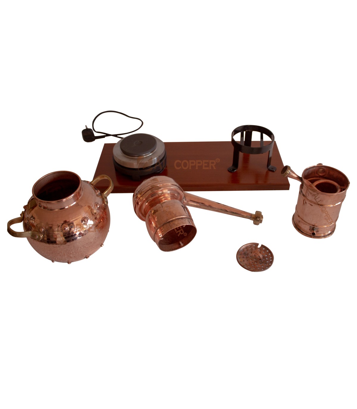 Este Elegante Alambique, feito à mão, é um clássico! Construindo em três partes, a caldeira soldada (também pode ser revitada) o grande capacete arábico com o cano ligeiramente descendente e o condensador, com a respectiva serpentina.